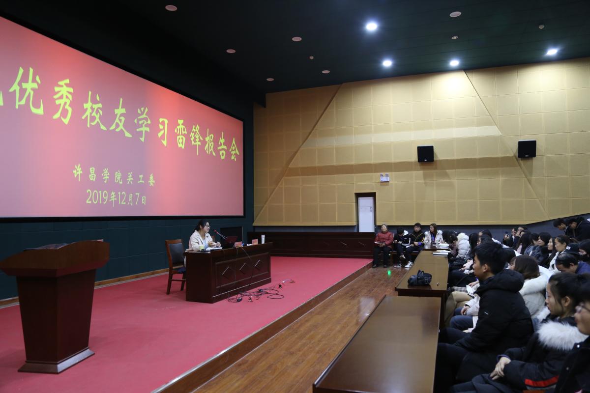 为深入学习贯彻党的十九届四中全会精神和《新时代公民道德实施纲要》,深入开展学雷锋活动,许昌学院关工委于2019年12月7日上午在创新创业学院会堂举办“许昌学院优秀校友学雷锋报告会”。参加报告会的有校关工委委员、校学生党建特聘组织员、各学院关工委主任、辅导员和学生代表;文学与传媒学院党总支书记赵颖、文学与传媒学院原关工委主任、现任学校纪委副书记赵茹和商学院党总支副书记、关工委主任海泳带领所在学院部分师生参加了这次报告会。校关工委副主任黄桂贞、王志远出席了会议。